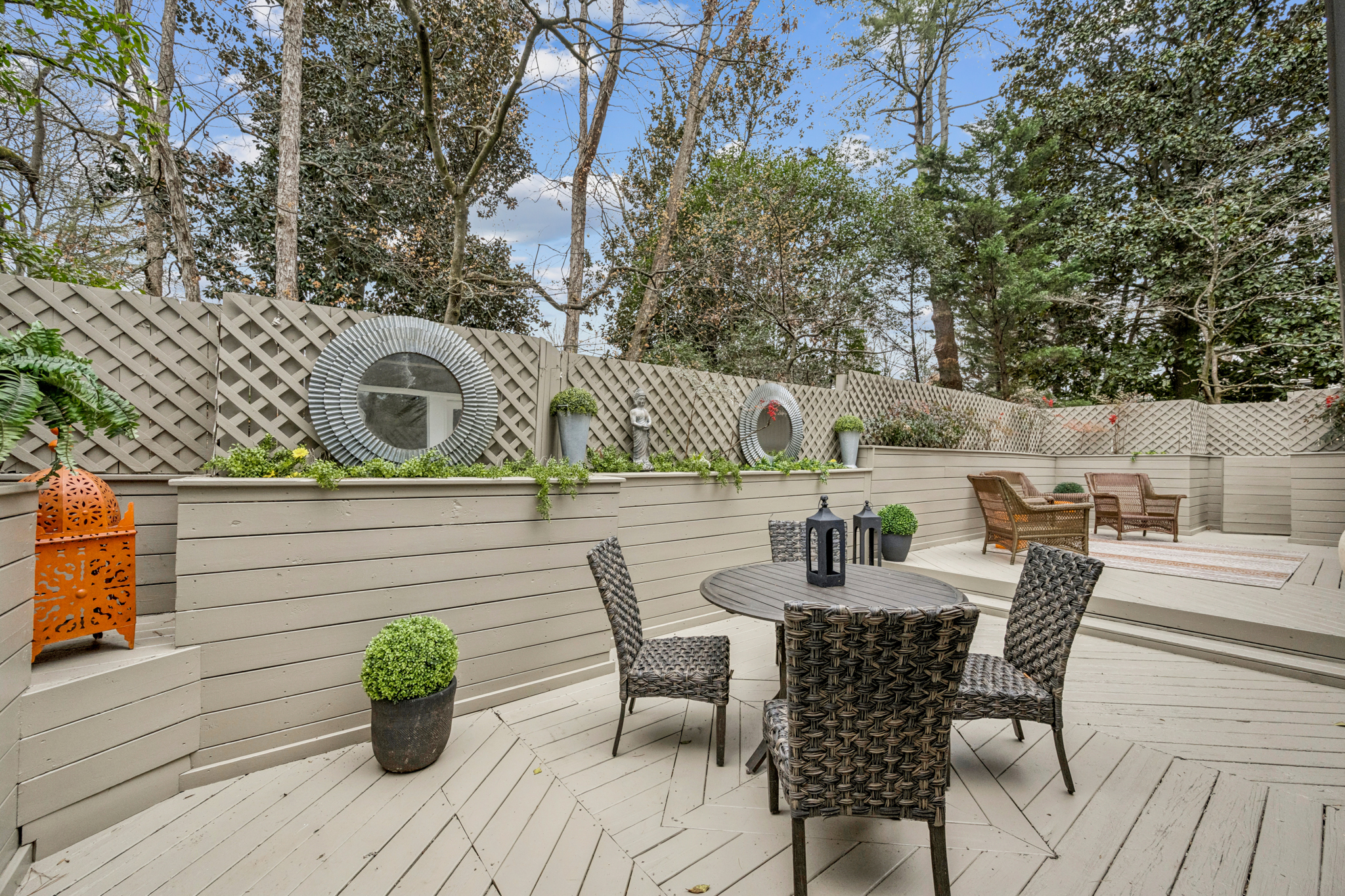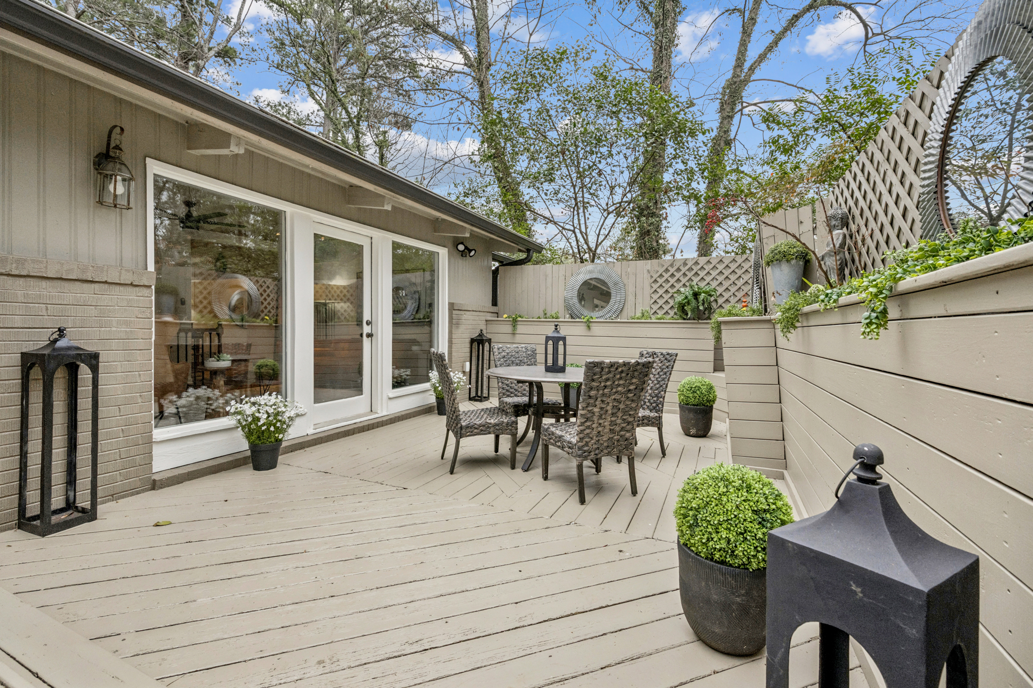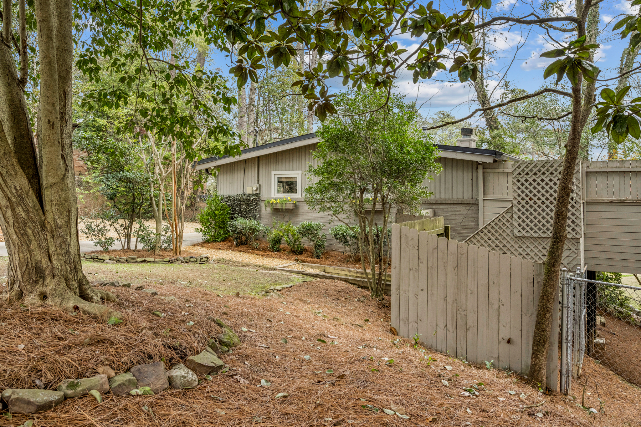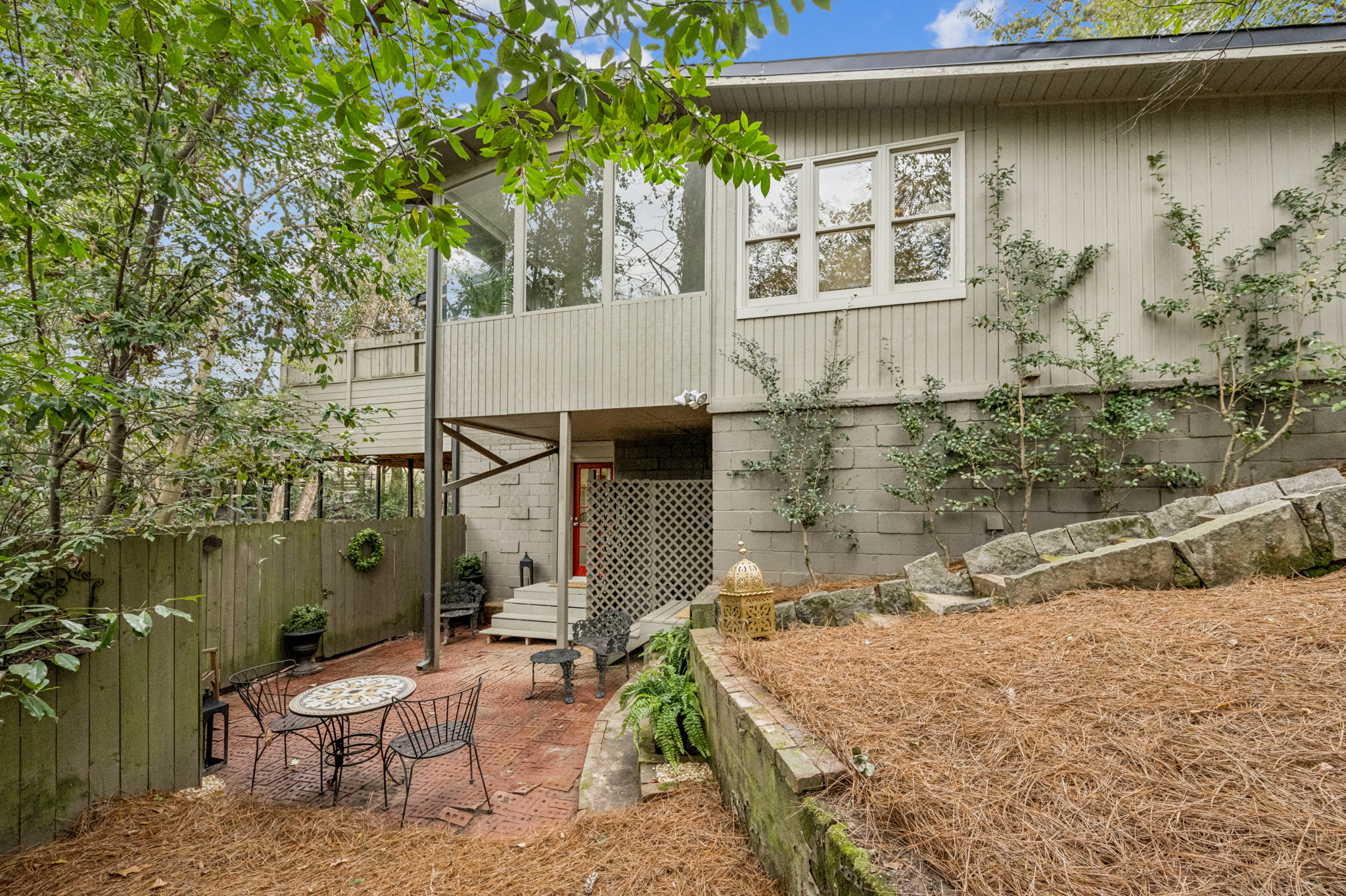 Don't let the charming cottage exterior fool you - this Brookhaven home lives far larger than it appears. From the street, this mid-century modern bungalow feels intimate and understated. Step inside, and soaring ceilings, expansive living areas, and thoughtful updates reveal a home that truly packs a punch. The primary suite offers an oversized walk-in closet - large enough for a true his and her setup with dedicated sides for each - a rare luxury in this architectural style. The walk-out terrace level dramatically expands the footprint, featuring two bedrooms, a full kitchen, two full baths, private entrance, laundry hookup, and storage. Ideal for an in-law suite, guest quarters, income-producing opportunity, or an incredible private retreat. Outdoor living shines with a massive privacy deck designed with two separate entertaining areas (and room for a hot tub), plus two fully fenced yards and a charming brick courtyard reminiscent of a Charleston garden - creating multiple private outdoor escapes. Tucked among $1-$2 million homes in one of Brookhaven's most sought after neighborhoods, this property delivers unbeatable access to effortless commuting, beloved local eateries, and everyday shopping conveniences. Behind its quietly confident exterior, you'll find unexpected scale, flexibility, and value - a home that feels modest from the curb yet impresses the moment you step inside.